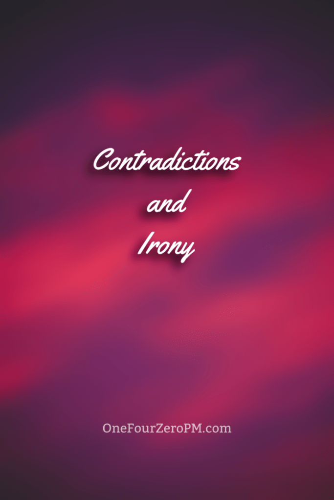 The ironies in life…maybe they are meant to teach us the lessons we don’t want to know. Or to be an example for others.